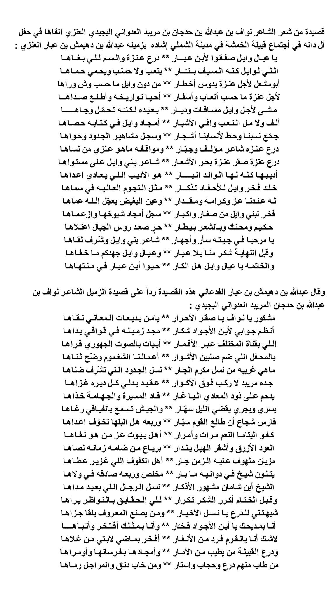 عبدالله بن عبار Twitterren قصيدة من شعر الشاعر نواف بن عبدالله بن حدجان بن مريبد العدواني البجيدي العنزي يثني على زميلة عبدالله بن عبار مع الرد Https T Co Fosgwqrofl