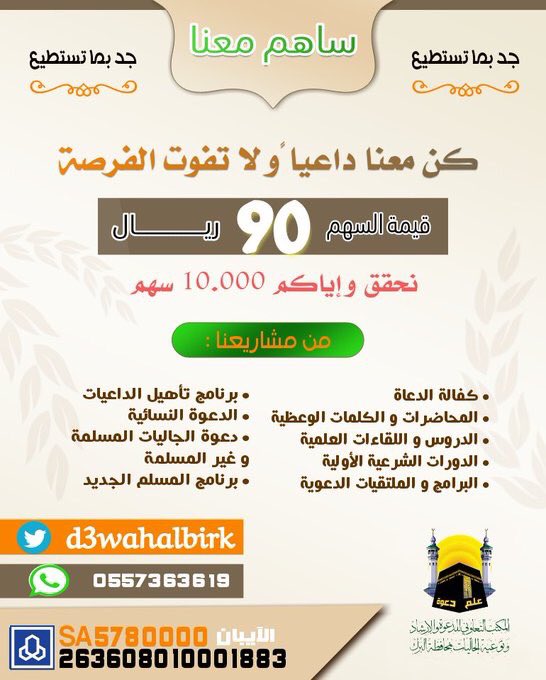 مدونة الباشق الإسلامي للتعريف بالإسلام ب 90 ريال فقط تساهم في كل البرامج والأنشطة الدعوية لمكتب الدعوة بالبرك D3wahalbirk