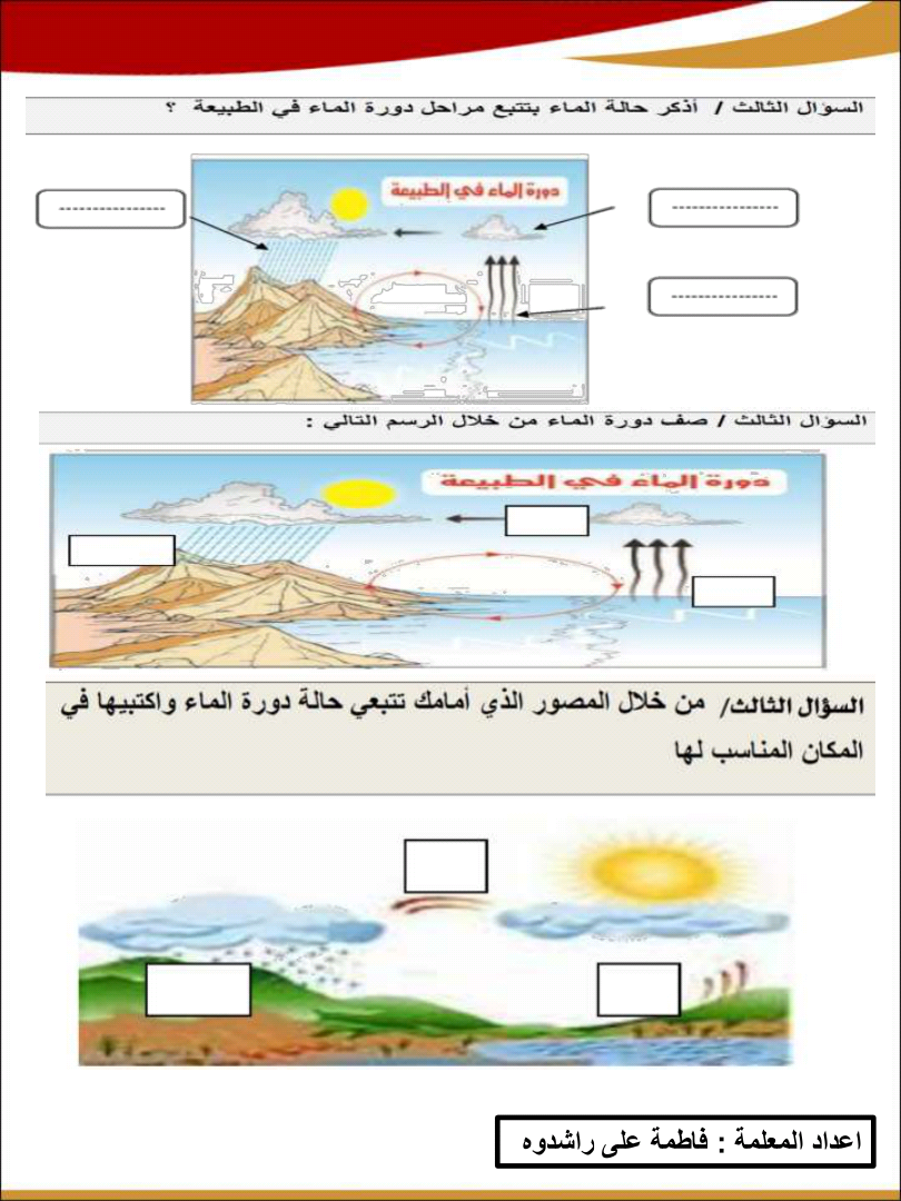 مراحل دورة الماء في الطبيعة للصف الثالث