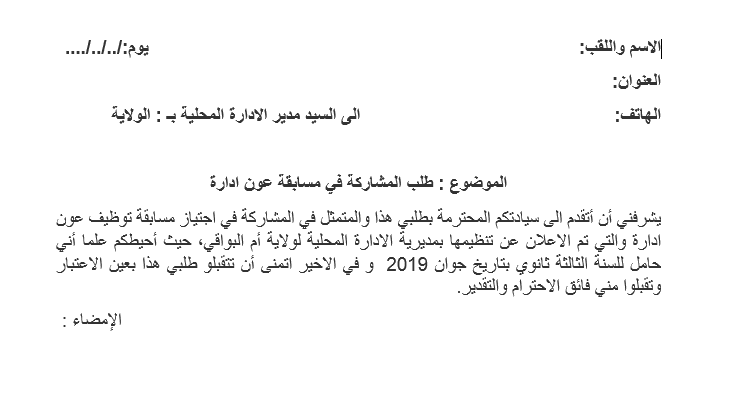 طلب خطي للمشاركة في مسابقة عون ادارة