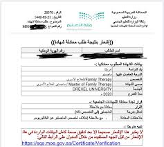 نموذج معادلة الشهادات في السعودية